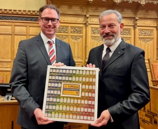 Stadtpräsident und Bürgermeister senden Marzipan an Besatzung der „Lübeck“. Seit dem Jahr 1965 verbindet Lübeck und Lufthansa eine offizielle Taufpatenschaft. Somit führt seit 60 Jahren stets eines der Flugzeuge der Lufthansa den Namen der Hansestadt. Die aktuelle „Lübeck“, ein Airbus A340-600 mit der Kennung D-AIHF, ist schon das sechste Flugzeug, das den Namen der Stadt in die ganze Welt trägt. Stadtpräsident Henning Schumann und Bürgermeister Jan Lindenau haben der Besatzung des Passagierflugzeugs anlässlich des Jubiläums ein Marzipanpräsent aus der namensgebenden Stadt übersandt.