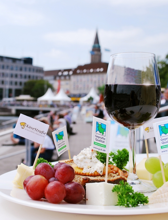Kaese_trifft_Wein_Kiel-MarketingNur noch wenige Tage bis zum fünfjährigen Jubiläum des Genießer-Events am Kieler Bootshafen. Vom 19.07. – 21.07. ist es wieder einmal soweit: bester Käse der Käsestraße Schleswig-Holstein trifft auf edelste Weine direkt vom Erzeuger aus Süddeutschland. Perfekt ergänzt werden die Köstlichkeiten der Käser und Winzer durch Live-Musik sowie den Angeboten der Landwirtschaftskammer im Zelt der Genüsse. Für die jüngeren Gäste gibt es natürlich auch wieder das kostenfreie KIEL.SAILING CITY Schnuppersegeln. Ebenfalls auf dem Wasser gibt es dieses Jahr auf dem Ponton erstmalig Urstrom Bier und die neuartige Komposition CerVino der Privatbrauerei Sauer und Hartwig aus Flensburg.