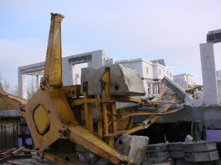 Fotos: TBF/Holger KrögerHL – St. Jürgen –  Am Dienstagmittag (20.11.2012) stürzte im Hochschulstadteil ein Kran um. Personen wurden glücklicherweise nicht verletzt. Gegen 13.30 Uhr war ein Baukran (etwa 25 Meter Höhe) umgefallen. Das ferngesteuerte Arbeitsgerät hatte Paletten auf einem Hausneubau abgeladen (Erdgeschoss), bevor er umstürzte.Ein 46-jähriger Lübecker konnte noch rechtzeitig zur Seite springen, so dass niemand verletzt wurde.Der Kran beschädigte einen silbernen BMW auf dem Nachbargrundstück (Fahrertür und Schweller), den Rasen eines Nachbargrundstücks und Teile der bereits gemauerten Seitenwände des Neubaus. Insgesamt entstand ein Sachschaden von mehreren tausend Euro. Die genaue Höhe kann noch nicht beziffert werden.