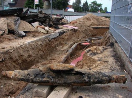 Foto: TBF/Holger Kröger – In Lübeck kam es am Donnerstag teilweise in einigen Stadtteilen zu Stromausfällen, weil eine Starkstrommuffe korrodiert war und explodierte. Bauarbeiter hatte reichlich zu tun, um die Muffe auszubauen und sie durch eine Neue zu ersetzen.
