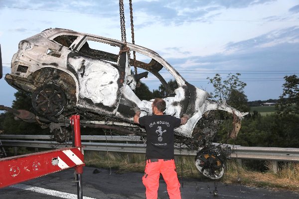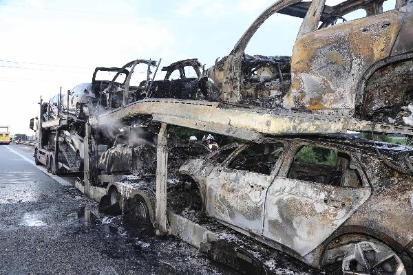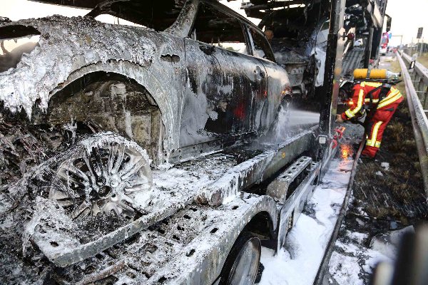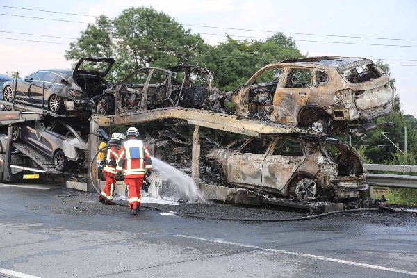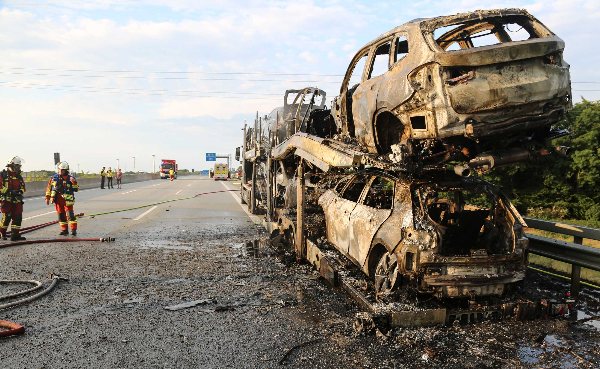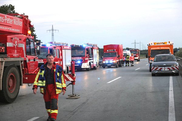 LKW Brand auf der A7 am Samstagabend – hochwertige PKW verbrannt