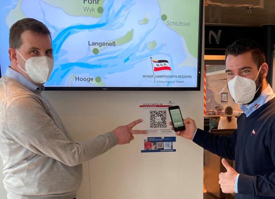 Die Anwendung der Luca-App erfolgt für W.D.R.-Kunden komplett freiwillig. „Uns geht es nicht nur darum, Fahrgästen eine sichere Dokumentation ihres Aufenthalts bei uns zu ermöglichen, sondern wir wollen die App vor allem auch bekannt machen“, betont Frederik Erdmann, Sicherheitsbeauftragter der W.D.R. Sein Gedanke: Mancher Insel- oder Halligurlauber lernt die Luca-App vermutlich erst auf der Fähre kennen. Hier kann er sie dann direkt installieren – und auch gleich seine Reise mit der Fähre dokumentieren. Einem auch in Pandemiezeiten sicheren Insel- oder Halligurlaub steht damit nichts mehr im Weg.