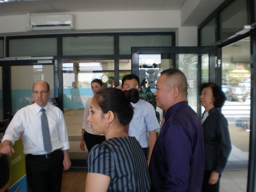 Yongqiang Chen (rechts) und Markus Matthießen (links) beim Rundgang durch den Lübeck Airport. Foto: PuRen