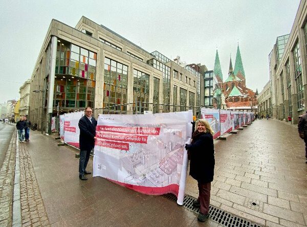Die Hansestadt Lübeck hat heute den offiziellen Startschuss für die Umbaumaßnahmen am ehemaligen Karstadt-Gebäude in der Innenstadt gegeben. Bürgermeister Jan Lindenau, Bausenatorin Joanna Hagen und die Projektleitenden des Gebäudemanagements Lübeck (GMHL) stellten gemeinsam die nun beginnenden Arbeitsschritte vor.