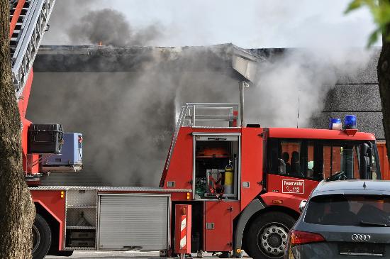Fotos: TBF/Holger Kröger – Lübeck (ots) – Ein Feuer unter einem Hallenvordach löste am Sonntagvormittag um 10:12 Uhr einen Großalarm (Feuer 2) aus. Bereits auf der Anfahrt war schwarzer Rauch und Feuerschein sichtbar. An einer 20m x 40m großen Halle brannte vor einem hohen Müllcontainer eine Sofagarnitur unter einem Vordach in voller Ausdehnung. Weitere Fotos siehe S.2)>>>>Nach 20 Minuten war das Feuer vor dem Container unter Kontrolle, hatte allerdings schon in das Dach übergegriffen. Das Feuer im Dach drohte die gesamte Halle in Brand zu setzen. Es wurde gelöscht und intensiv auf weitere Glutnester kontrolliert. Das Feuer im Dach war um 10:44 Uhr in Gewalt. Etwa 2000 Liter Löschwasser liefen einsatzbedingt in die Kanalisation und wurde vorschriftsmäßig der Wasserbehörde gemeldet.