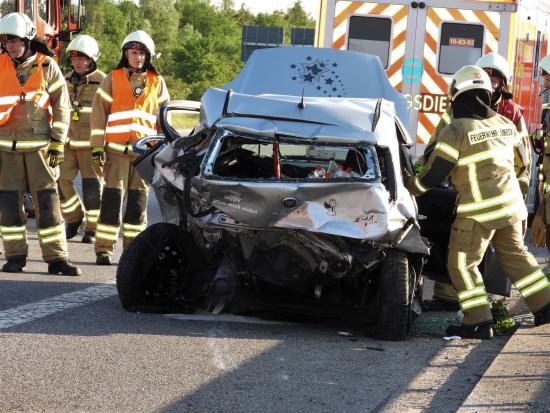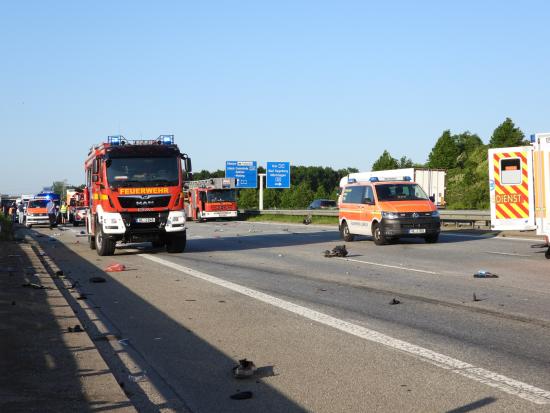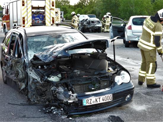 Ein nachfolgender Seat Altea aus dem Kreis Tübingen konnte ebenfalls nicht mehr stoppen und krachte mit hoher Geschwindigkeit in den Fiat Punto. Beide Fahrzeuge schleuderten gegen die rechte Leitplanke und von dort zurück auf die Hauptfahrspur. Dort kamen sie nach circa 100 Meter zum Stehen. Die 66-jährige Fiat-Fahrerin und der Fahrer des Seat wurden lebensgefährlich verletzt.