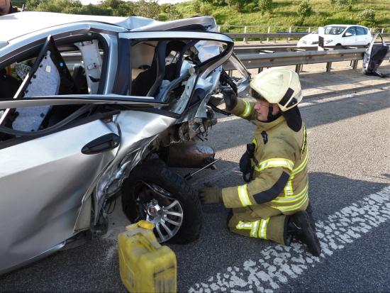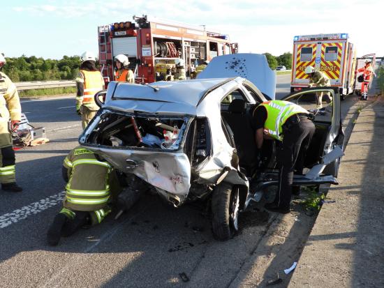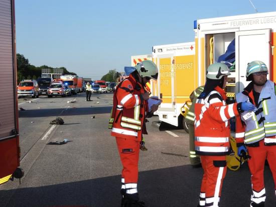 Text und Fotos: TBF/Holger Kröger · Lübeck: Schwerer Unfall am A1 Kreuz. Acht Verletzte, zwei Menschen schweben in Lebensgefahr · Am Freitagabend kam es zu einem schweren Unfall am Autobahnkreuz Lübeck. Die A1 mußte in Richtung Hamburg längere Zeit voll gesperrt werden. Drei Autos waren zusammengestoßen. Zwei Menschen wurden schwer verletzt, sie schweben in Lebensgefahr.