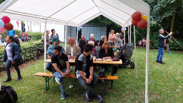 Kleine und größere Kinder, junge Leute, ältere und alte Leute waren zum Fest und zum Feiern gekommen und ließen es sich bei Brat- und Hähnchenwürsten, veganen und iranischen Speisen schmecken und nutzten die Gelegenheit, bei Smal Talk, Musik, Kinder- und Erwachsenenspielen gut gehen. Es war ein Fest zum Wiederholen, weiter so!