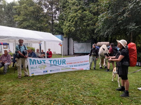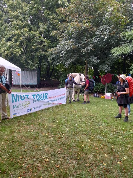 Text: (tbf) Fotos: Wolfgang Freywald (6) + Claudia Bolte, Wahlverwandtschaft (4 Mut-Tour 2022) · Am Samstag, 27. August 2022, feierte das Mehrgenerationen Haus in Lübeck Eichholz, Im Brandenbaumer Feld 27-29, von 12 – 16 Uhr das Sommerfest der Generationen für Groß und Klein. Wir haben uns das Fest einmal angesehen und waren in einem traumhaften Garten und Fitnesspfad davon begeistert. Eingeladen waren sieben Frauen und 2 Herren von der Mut Tour 2022, sie brachten 2 Kaltblutpferde mit, die sich auf dem Rasen sehr wohl fühlten und gleich zu fressen an fingen.