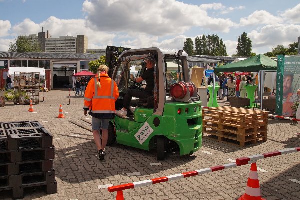 Neben Gesprächen mit Unternehmen und Bildungsträgern gibt es viele Aktionen, wie zum Beispiel einen Gabelstapler-Parcours, Schweißvorführungen oder einen besonderen Einblick in über 150 verschiedene Ausbildungsberufe mit VR-Brillen.