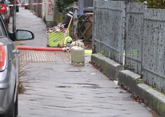 Am Vormittag wurden dann in der Garage, die sich in dem Haus befindet, drei geöffnete Gasflaschen und ein Kanister gefunden. In einem Nebenraum standen Kerzen, die offenbar schon entzündet waren. Die Feuerwehr holte die Gegenstände aus der Garage.