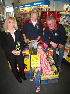 Die Neueröffnung des nachbarlichen „ALDI“ hatte Wolfgang Bahr, Inhaber vom Riepen Getränkemarkt & Lieferservice in der Ziegelstraße 105 – 107 zum Anlass genommen, selbst neben einer Tombola eine Ratespiel zu veranstalten. Nun wurden die Gewinne überreicht. Aufgabe war es, die Zahl in einer Riesenflasche befindlichen Kronenkorken möglichst genau zu schätzen. Die glückliche Hauptpreis-Gewinnerin Halina Brede, die sich nun über einen Franziskaner – Gartenpavillon freut, berichtete mit Töchterchen Nadine bei der Übergabe, was überhaupt zu ihrem Mitspielen geführt hat: „Der Anlass war tatsächlich der Besuch der Neueröffnung des ALDI – Marktes. Als ich da mit meiner Mutter herausgekommen bin, verteilte ein junger Mann Freilose für die Riepen-Tombola. Im Getränkemarkt wurde ich bei der Gewinnausgabe von Frau Hansen auf das Ratespiel aufmerksam gemacht. Na ja, und da fiel mir einfach die Zahl 2.222 ein!“ Das war die exakt genaue Lösungszahl, die ihr wohl Fortuna persönlich zugeflüstert hat. Die weiteren, der richtigen Anzahl nahe kommenden Gewinner trösten sich inzwischen mit Liegestuhl, Luftmatratzen oder jeweils drei Fässchen Kölsch. Eines davon gewann Bernd Wagner: Er lag mit der Zahl 2.300 auch nicht unbedingt schlecht…