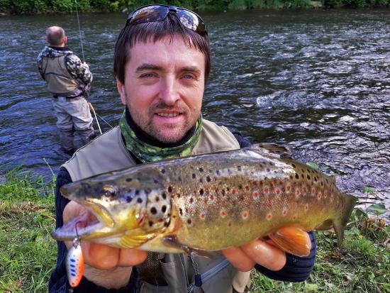 Olek zeigt sodann, welche Fische mit den Ködern zu fangen sind, nämlich Forellen, Barsche, Zander und andere Raubfische.