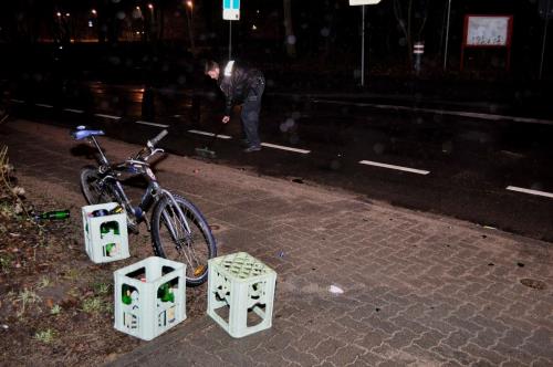 Text und Fotos: TBF/Holger Kröger – Ein stark angetrunkener Fahrradfahrer fuhr aus der Edisonstrasse auf den Mönkhofer Weg voll beladen mit Leergutkisten. Eine Kiste hing auf der linken Seite, eine auf der rechten Seite des Lenkrades und eine oben auf dem Lenkrad. Der Radfahrer wurde dann von einem Pkw erfasst und mit den Leergutkisten auf die Fahrbahn geschleudert. Ein Kumpan hatte auch noch 2 Leergutkisten dabei.