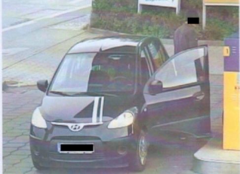 Auffällig war bei beiden zeitlich weit auseinander liegenden Taten, dass immer ein dunkelfarbener Hyundai i 10 betankt wurde. Bei dem Fahrzeug sind zwei breite, helle Zierstreifen auf der Motorhaube. Im Juli 2011 konnte ein Aufkleber „Abi 11“ an der Heckscheibe beobachtet werden.