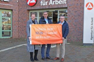 Steffi Koppitz (v.l. Geschäftsführerin für den operativen Bereich), Markus Dusch (Chef der Agentur für Arbeit Lübeck) und Arn Grünberg (Bereichsleiter) erklären: „In Deutschland wird jede vierte Frau mindestens einmal in ihrem Leben Opfer von physischer und/oder sexualisierter Gewalt. In vielen Fällen erleben die Frauen diese Gewalt in der häuslichen Gemeinschaft. Und das geht uns alle an, da Gewalt gegen Frauen in allen sozialen Schichten und Altersgruppen vorkommt. Körperliche Gewalt ist dabei nur eine Facette eines Verhaltensmusters, dass auf Macht und Kontrolle zielt. Betroffene sind häufig auch psychischer Gewalt ausgesetzt. Durch soziale Isolation oder wirtschaftlichen Druck werden diese Straftaten oft nicht zur Anzeige gebracht. Trauen Sie sich über Ihre Erfahrungen zu sprechen, denn Sie sind nicht allein!“Das bundesweite Hilfetelefon „Gewalt gegen Frauen“ will dieses Schweigen brechen. Das Hilfetelefon ist an 365 Tagen im Jahr, rund um die Uhr kostenfrei unter der 08000 116 016 erreichbar. In 18 Sprachen bietet es Betroffenen die Möglichkeit, sich zu jeder Zeit anonym, kompetent und sicher beraten zu lassen, auch zu regionalen Unterstützungsangeboten.