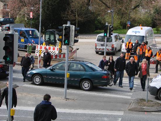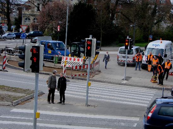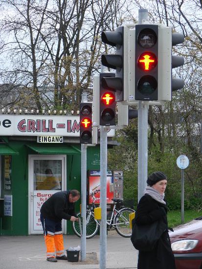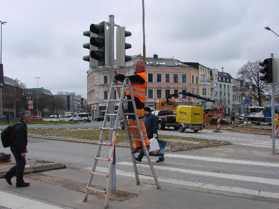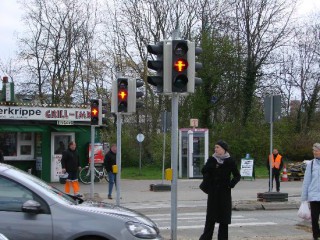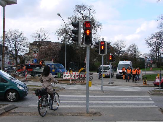 Fotos: TBF/Holger Kröger – offiziell wird die Ampelanlage erst Montag eröffnet, aber sie funktioniert jetzt schon. Gebaut wurde die Anlage, weil hier ein Unfallschwerpunkt war und damit der Verkehr besser fliessen kann. Der Zebrastreifen wurde entfernt und die letzten markierungsarbeiten wurden gestern fertiggestellt. Weitere Fotos >>>Die Ampelanlage hat eine Besonderheit: Sie zählt 75 Sekunden zurück, damit die Fussgänger wissen, wie lange sie noch Zeit haben, die Strasse zu überqueren.