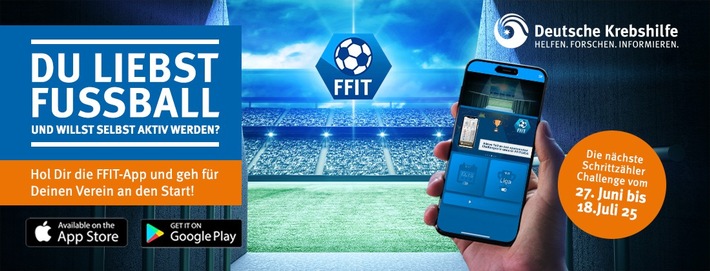 Neue App der Deutschen Krebshilfe bringt Fußballfans in Bewegung / Ab dem 27. Juni Schritte zählen und Punkte für den Lieblingsverein sammeln