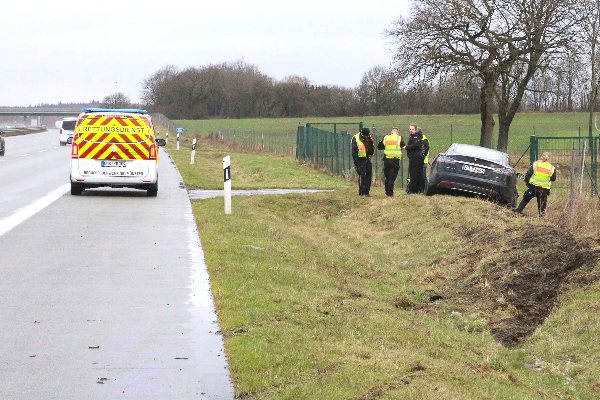 Die hydraulische Schere der Feuerwehr kam zum Einsatz, um eine Person aus dem PKW zu befreien. Der Verkehr wurde während des Einsatzes einspurig an der Unfallstelle vorbei geleitet. Unfallursache war wohl eine plötzlich einsetzende Glätte durch starken Hagenschauer.
