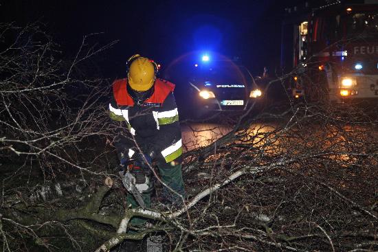 Fotos L319: Maria Heidecke (mhe) – Fotos Schwalbenstraße: Thomas Nyfeler (tny) – Durch den Orkan Xaver wurde die L319 Neumünster, Richtung Brockenlande, für ca. 15 Minuten vollgesperrt, dort macht sich auf der Straße ein dicker Baum lang , der von der Berufsfeuerwehr Neumünster zerkleinert wurde. In der Schwalbenstraße lag eine 10 Meter lange Birke, die von der Berufsfeuerwehr Neumünster entfernt wurde. Insgesamt lief die Situation glimpfig ab bis 22.00 Uhr, der Orkan Xaver war nicht so stark wie befürchtet in Neumünster unterwegs.