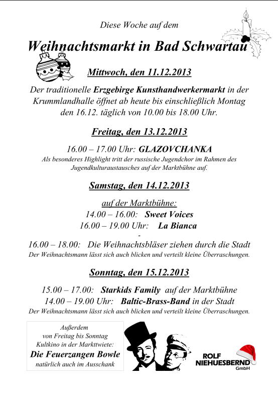 Niehuesbernd: Kommende Woche auf dem Weihnachtsmarkt in Bad SchwartauNiehuesberd: