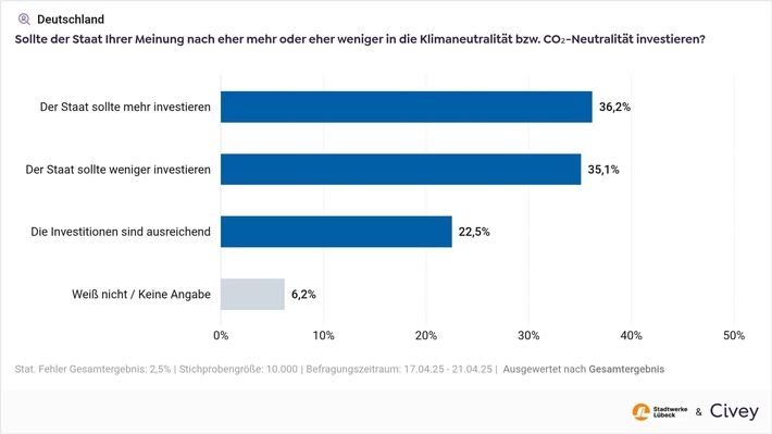 WeiterlesenLübeck (ots) – – Polarisierte Gesellschaft: Etwa ein Drittel der Befragten fordert mehr, genauso viele fordern weniger staatliche Investitionen in
