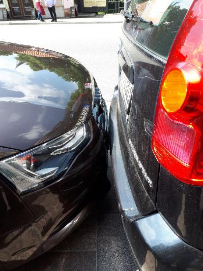 Ich fragte ihn, warum er so dicht an mein Auto rangefahren wäre und er sagte: „Die Parklücke war so eng, es paßte gerade so!“ Dann sagte er noch, es täte ihm Leid, er hätte vielleicht ein Stückchen mehr Platz lassen müssen. Ein Schaden war nicht entstanden, ich bat ihn dann aber doch noch, zukünftig etwas mehr Abstand vov der Stoßstange seines „Vordermanns“ einzuhalten.