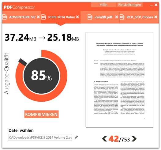 PDF Compressor schafft auch große PDFs in kurzer Zeit.