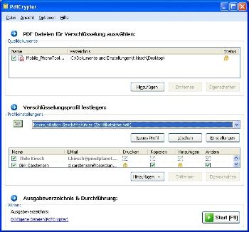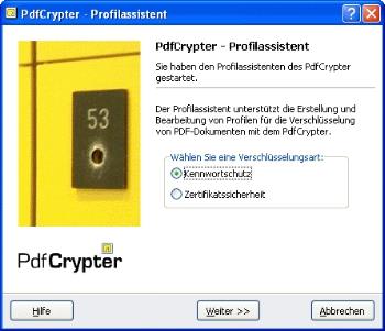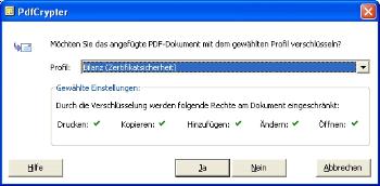 PdfCrypter 2.5 Professional richtet sich an Firmen mit einem höheren Sicherheitsanspruch. Hier stehen die Verschlüsselung mit dem AES-Algorithmus, eine asymmetrischen Verschlüsselung mit Zertifikatsicherheit oder eine Verschlüsselung mit den gängigen SmartCards zur Verfügung.