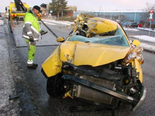 Fotos : TBF/Holger Kröger – Zu einem schweren Unfall kam es gestern in der Posener Strasse. Der Fahrer hatte Glück, er wurde zwar schwer verletzt, schwebt aber nicht in Lebensgefahr.Der Fahrer eines Seat Ibiza aus Ostholstein fuhr mittags auf der Posener Straße und kam aus bisher noch nicht geklärter Ursache von der Fahrbahn ab und geriet unter einen abgestellten Trailer. Die Polizei musste die Fahrbahn komplett sperren. Der PKW erlitt Totalschaden. Der Fahrer konnte aus dem Wrack befreit werden. Ein Notarzt kam mit dem Hubschrauber. Der Mann wurde anschließend mit einem Rettungswagen ins Klinikum gebracht. Es besteht keine Lebensgefahr.