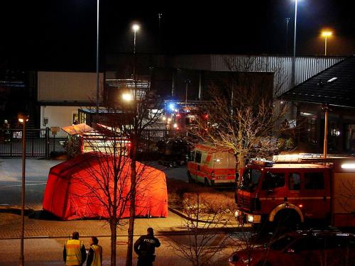 Gegen 20.15 Uhr war eine starke Rauchentwicklung aus der Lagerhalle eines Entsorgungsbetriebes gemeldet worden. Eine