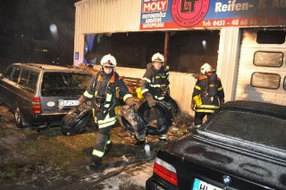 Fotos: TBF/Holger Kröger – Lübeck (ots) – Am heutigen Freitagmorgen (08.02.) kam es gegen 05.40 Uhr zu einem Einsatz der Feuerwehr und Polizei in der Steinbrücker Straße. Ursächlich war ein brennender Reifenstapel auf dem Gelände eines dort ansässigen Händlers. Ein Reifenstapel von vier Quadratmeter brannte in einer Lagerhalle aus noch unbekannter Ursache. Die Lübecker Feuerwehr konnte den Brand schnell ablöschen. Vorsorglich wurde von der Polizei eine Rundfunkdurchsage als Warnmeldung veranlasst. Die nahe gelegene Autobahn war nicht von der Rauchentwicklung betroffen.