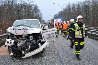 Lübeck (ots) – Am Mittwoch, 19. Dezember 2012, kam es in Lübeck auf der B 75 stadtauswärts zu einem Verkehrsunfall. Der allein im Fahrzeug befindliche Fahrer wurde nach ersten Erkenntnissen mit lebensgefährlichen Verletzungen in die Universitätsklinik Lübeck eingeliefert. Gegen 14:30 Uhr war der Fahrer eines weißen VW-Transporters auf der Travemünder Allee stadtauswärts unterwegs. Kurz vor der Abfahrt Schlutup/Israelsdorf fuhr der Lübecker offenbar ungebremst auf einen mit niedriger Geschwindigkeit vor ihm fahrenden Radlader auf. Nach dem Unfall war der 47-jährige in seinem Transporter eingeklemmt und musste von der Feuerwehr geborgen werden. Für die Zeit der Bergung wurde die Travemünder Allee von 14:50 Uhr bis 15:10 Uhr voll gesperrt. Zu wesentlichen Verkehrsbehinderungen kam es nicht. Der Unfallfahrer wurde offensichtlich lebensgefährlich verletzt und befindet sich derzeit in der Lübecker Universitätsklinik. Zu Verletzungen des Opfers kann noch nichts gesagt werden. Der Unfallwagen musste aufgrund der erlittenen Schäden abgeschleppt werden. Zu Schäden oder Schadenshöhe liegen derzeit keine Erkenntnisse vor. Die Ermittlungen in der Sache führt das 3. Polizeirevier Lübeck. Rückfragen bitte an: Polizeidirektion Lübeck Anett Dittmer Telefon: 0451-131 2015  E-Mail: pressestelle.luebeck.pd@polizei.landsh.de