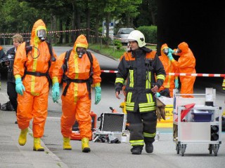Fotos: TBF/Holger Kröger – 14.06.2012 – 15:34 Uhr, Polizeidirektion Lübeck (ots) – Am 14. Juni 2012 war Rauch aus mehreren Gullys im Stadtteil St. Lorenz Nord ausgetreten. Ein größerer Polizei- und Feuerwehreinsatz wurde daraufhin erforderlich. Personen wurden nicht verletzt. Vormittags, gegen 08:45 Uhr, wurde in der Schönböckener Straße festgestellt, dass aus mehreren Gullys in der Fahrbahn, unter der dort befindlichen Autobahnbrücke, Rauch austrat. Sofort wurde der Umweltschutztrupp des Polizeibezirksreviers Lübeck alarmiert. Durch die Polizeikräfte wurde dann die Feuerwehr angefordert. Erste Messungen ergaben, dass es sich um gefährliche chemische Gase handeln könnte. Zur Sicherheit wurde das Gebiet weiträumig abgesperrt.Die ersten Ermittlungen ergaben, dass bei Reinigungsarbeiten einer Chemiefirma im Stadtteil St. Lorenz Nord säurehaltige Flüssigkeiten in das Kanalisationssystem gelangt waren und diese die Rauchentwicklung verursachten.Durch die Feuerwehr wurde das Sielsystem im betroffenen Bereich gespült. So wurden die Chemikalien derartig verdünnt, dass für die Bevölkerung keine Gefahr bestand. Die Feuerwehr war mit 25 Kräften am Einsatzort, davon auch Spezialisten für Gefahrgut.