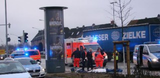 Fotos: TBF/Holger Kröger – Lübeck (ots) – Am Donnerstag, 03. Januar 2013, kam es zu einem schweren Verkehrsunfall im Stadtteil St. Lorenz Nord. Ein Radfahrer kollidierte mit einem Lkw und erlag noch am Unfallort seinen Verletzungen. Gegen 13:40 Uhr fuhr ein 38-jähriger Bad Schwartauer mit seinem 40-Tonnen-Sattelzug in der Einsiedelstraße in Richtung Nordlandkai. Als der Lkw-Fahrer geradeaus über die Kreuzung Einsiedelstraße/Josephinenstraße fahren wollte, kam nach ersten Erkenntnissen von rechts ein Radfahrer auf die Fahrbahn gefahren. Letzterer wurde vom Lkw erfasst. Der 79-jährige wurde offensichtlich so schwer verletzt, dass er noch am Unfallort seinen Verletzungen erlag.