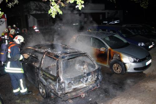 Zunächst brannte gegen 01.10 Uhr ein silberner VW Passat in der Ziegelstraße auf dem Parkplatz eines Penny-Marktes. Um das Fahrzeug komplett ablöschen zu können, musste die Feuerwehr Lübeck eine Fahrzeugscheibe einschlagen.Drei Stunden später, um 04.10 Uhr, brannte auf demselben Parkplatz in der Ziegelstraße ein weiterer VW Passat, an dem keine Kennzeichen angebracht waren. Als die Feuerwehr Lübeck am Brandort eintraf, explodierte der Tank des weißen Volkswagens. Hierdurch und durch die große Hitzeentwicklung wurden zwei rechts und links daneben stehende