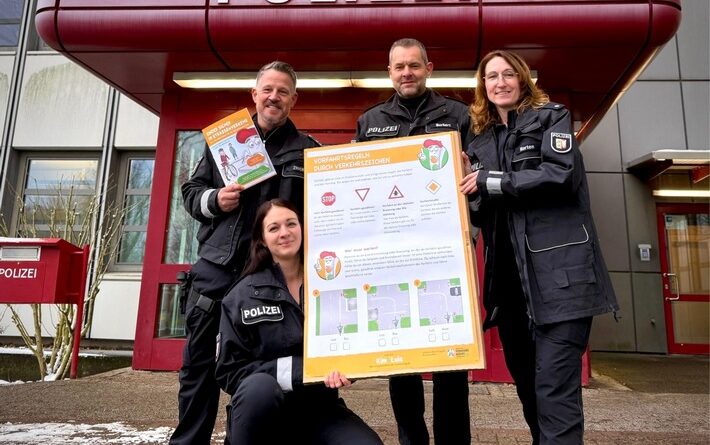 Ergänzend zu den Arbeitsheften wird auch ein Plakat für den Unterricht zur Verfügung gestellt, auf dem die Thematik „Vorfahrt“ präsentiert wird.