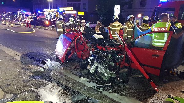 Fotos: TBF/Holger Kröger · Lübeck (ots) – Gemeinsame Medieninformation der Pressestellen der Staatsanwaltschaft Lübeck und der Polizeidirektion Lübeck / Am Montag (30.05.2022) kam es zu einem folgenschweren Unfall in der Lübecker Fackenburger Allee. Ein PKW Audi war mit überhöhter Geschwindigkeit in die Kreuzung Bei der Lohmühle eingefahren und dort in die Seite eines Kleinwagens gestoßen. Der Beifahrer des PKW Hyundai verstarb noch im Fahrzeug, vier weitere Personen wurden zum Teil schwer verletzt. Gegen 22:50 Uhr befuhr ein mit drei Personen besetzter PKW Audi A8 die Fackenburger Alle in Richtung Stockelsdorf. Dabei überschritt er nach Zeugenaussagen auch die zulässige Höchstgeschwindigkeit von 50 Km/h deutlich. Im Kreuzungsbereich zur Straße Bei der Lohmühle stieß der Audi ungebremst in die Seite eines sich in der Kreuzung befindlichen PKW Hyundai. Dieser bog gerade aus der Fackenburger Allee kommend nach links in die Lohmühle ab. Durch die Wucht des Aufpralls wurden beide Fahrzeuge noch über 100 Meter weiter in Richtung Stockelsdorf geschleudert. Der Hyundai blieb dabei zunächst auf der Seite liegen und konnte durch Passanten aufgerichtet werden. Für den Beifahrer des Kleinwagens kam jede Hilfe zu spät. Er verstarb noch an der Unfallstelle, nachdem er in dem Fahrzeug eingeklemmt wurde. Die Identität des Verstorbenen konnte noch nicht bestätigt werden. Es handelt sich vermutlich um eine im Ausland lebende Person. Der 48-jährige Fahrer aus Lübeck wurde lebensgefährlich verletzt und musste notoperiert werden. Der 21-jährige Fahrer des Audi sowie sein 19-jähriger Beifahrer wurden schwer verletzt. Der im Fond befindliche 19-jährige Mitfahrer kam ebenfalls mit Verdacht auf schwere Verletzungen in ein Krankenhaus. Sie alle wohnen in Lübeck. An beiden Fahrzeugen entstand wirtschaftlicher Totalschaden. Sie mussten abgeschleppt werden. Auf Antrag der Staatsanwaltschaft Lübeck wurde ein Gutachter zur Unfallstelle entsandt, um die Ursache zu klären. Die genauen Umstände, die zu dem Unfall geführt haben, werden derzeit in einem Ermittlungsverfahren geprüft. Eingesetzt waren die Berufsfeuerwehr Lübeck sowie die freiwillige Wehr aus Schönböcken, mehrere Rettungswagen und ein Notarzt. Die Polizei war mit 6 Streifenwagen des 2. und 4. Polizeireviers sowie einer Besatzung der Diensthundestaffel eingesetzt. Für die Dauer der Unfallaufnahme und Bergung der Fahrzeuge musste die Fackenburger Allee zeitweise voll gesperrt werden. Beide Fahrzeugführer müssen sich wegen des Verdachts der fahrlässigen Tötung in einem Strafverfahren verantworten. Zudem wird gegen den Fahrer des PKW Audi wegen des Verdachts der Straßenverkehrsgefährdung aufgrund überhöhter Geschwindigkeit ermittelt. In diesem Zusammenhang wird auch der Tatbestand eines möglichen illegalen Straßenrennens geprüft. Hierzu werden derzeit die Zeugenaussagen ausgewertet. Detaillierte Ergebnisse erhoffen sich die Ermittler aus dem noch ausstehenden Gutachten der DEKRA.