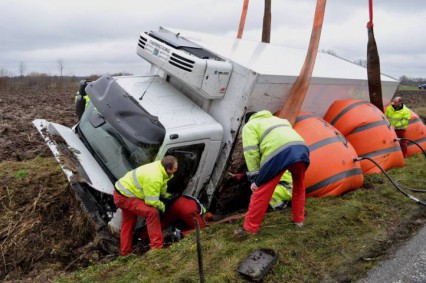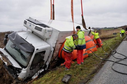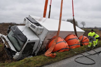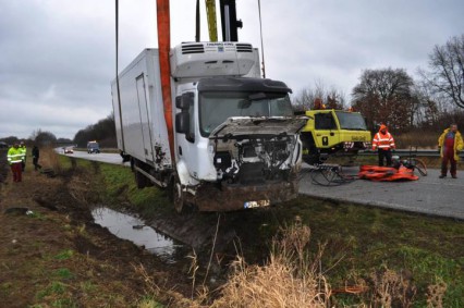 Fotos: TBF/Holger Kröger – Lübeck (ots) – Am Freitag, 16. Dezember 2011, kam ein 12-Tonnen Lkw von der Fahrbahn ab. Für die Bergung wurde der betroffene Autobahnabschnitt zwischen den Anschlussstellen Lensahn und Neustadt/Pelzerhaken in Fahrtrichtung Süden voll gesperrt.