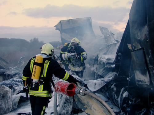 Die wahrnehmbaren Detonationsgeräusche waren die durch Hitzeentwicklung platzenden Lkw-Reifen.