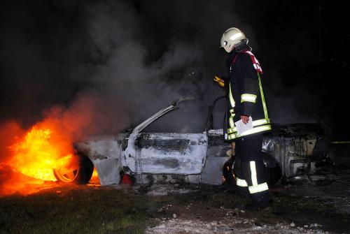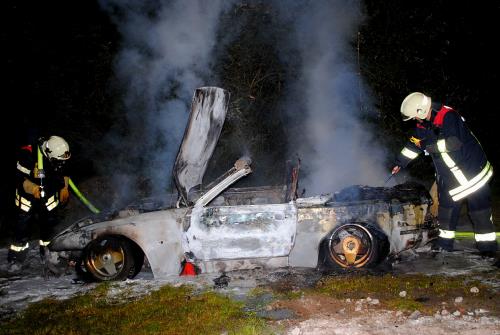 Am Donnerstagabend gegen 23 Uhr brannte auf dem Parkplatz in einem Gartengelände ein geparkter Porsche völlig aus. Beim Eintreffen der Feuerwehr brannte der Pkw schon in voller Ausdehnung. Durch das schnelle Eingreifen der Feuerwehr konnte ein übergreifen der Flammen auf Büsche und Sträucher verhindert werden. Die Feuerwehr geht von Brandstiftung aus. Personen kamen bei dem Feuer nicht zu Schaden.