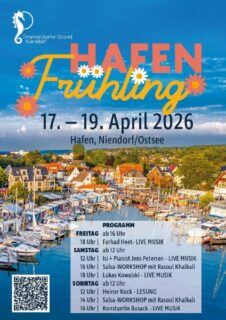 Die Timmendorfer Strand Niendorf Tourismus GmbH (TSNT GmbH) begrüßt den Frühling mit einer besonderen Premiere: Erstmals findet der „Hafenfrühling“ statt und verwandelt den Niendorfer Hafen in eine farbenfrohe Erlebniswelt für Gäste jeden Alters.Von Freitag, 17. April, bis Sonntag, 19. April 2026 erwartet Besucherinnen und Be-sucher ein abwechslungsreiches Programm in maritimer Atmosphäre. Die Veranstal-tungszeiten sind am Freitag von 16 bis 21 Uhr, am Samstag von 12 bis 21 Uhr sowie am Sonntag von 12 bis 19 Uhr.