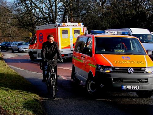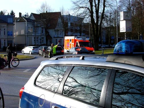Text: hanseatic news – Fotos: TBF/Holger Kröger – Lübeck- Am Donnerstagmorgen kam es am Mühlentorplatz zu einem schweren Verkehrsunfall. Ein Ein 66-jähriger wollte mit seinem Nissan Primera von der Mühlentorbrücke aus in den Kreisverkehr einbiegen. Dabei übersah er eine 51-jährige Radfahrerin. Die Radfahrerin konnte nicht mehr rechtzeitig ausweichen und fuhr in die Fahrerseite des Nissan Primera. Bei dem Sturz erlitt die Radfahrerin einen Beckenbruch. Ein Notzarzt versorgte die schwer verletzte Frau, anschließend wurde sie in ein Krankenhaus gebracht.