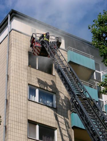 Fotos: TBF/Holger Kröger – Lübeck- Am Montag gegen 15 Uhr kam es im Brüder-Grimm-Ring in einem Wohnblock zu einer Rauchentwicklung. Als die Feuerwehr eintraf drang Qualm aus den Fenstern einer Wohnung im siebten Obergeschoss. Die Einsatzkräfte verschafften sich mit Gewalt Zutritt zu der Wohnung.