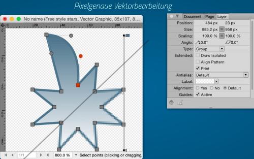 Um pixelgenaues Arbeiten zu erleichtern, kann ein Pixelraster eingeblendet werden und eine automatische Ausrichtung ist möglich.