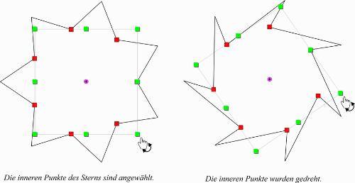 - Vektorpunkte bearbeiten: Sind mehrere Pfadpunkte angewählt, werden Änderungen an einem Kurvenhilfspunkt synchron auf alle anderen Hilfspunkten angewendet.