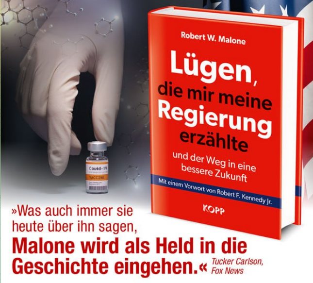 »Nur wenige Menschen sind in einer besseren Position als Robert Malone, um zu wissen, welche Lügen uns die Regierung über Covid erzählt hat. Und nur sehr wenige sind mutig genug, diese Lügen öffentlich zu benennen.« Tucker Carlson