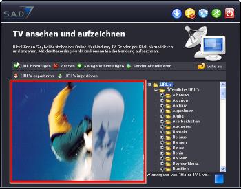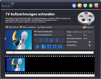 Endlich können alle Internet-Streams, die in FreeTV laufen, per Knopfdruck mit der neuen und innovativen Recording-Funktion aufgezeichnet werden. Per Klick auf den Aufnahmeknopf wird dann das laufende Programm im WMV-Format (Windows Media Video) auf die Festplatte gespeichert. Ist das Video zu lang oder eine Werbung vor dem Clip, kann der Nutzer es mit der neuen Schnittfunktion anschließend weiter bearbeiten und auf die benötigte Größe zurechtschneiden. Mit FreeTV 2 bietet S.A.D. eine völlig neuartige und noch nicht vorhandene Möglichkeit, Internet-TV aufzuzeichnen.
