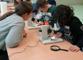 Die Kinder untersuchten dort unter anderem, wie Haut unter dem Binokular aussieht, wie der Körper Nahrung verarbeitet und wie ein Stethoskop funktioniert. Außerdem beschäftigten sie sich mit ihren Sinnen, der Zahnpflege und grundlegenden Abläufen im Körper.