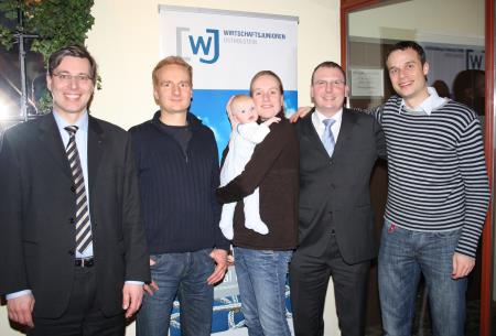(Foto: Der Vorstand der Wirtschaftsjunioren Ostholstein 2010: Geschäftsführer Can Özren (von links), Thilo Untermann, Vorstandssprecherin Sandra Stötzner mit Sohn Nils Ole, Alexander Fritsche und Thies Elteste.)